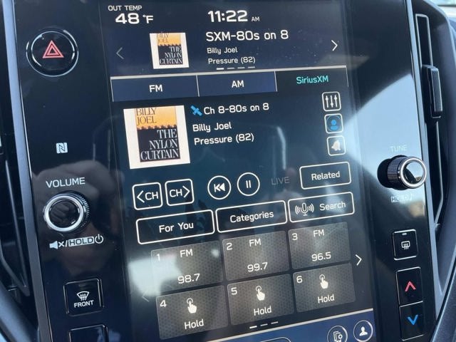 - Radio: Subaru 11.6" Multimedia Plus System -inc: AM/FM stereo, HD Radio, multi-touch gesture high resolution display screen, voice activated controls, Bluetooth® audio streaming and hands-free phone connectivity, Bluetooth® hands-free SMS text messaging connectivity, iPod control capability, smartphone integration: wired and wireless Android Auto w/full screen view and wireless Apple CarPlay w/full screen view, USB and Over The Air (OTA) audio system update, steering wheel audio system and Bluetooth® control switches, 6 speakers (2 dash panel tweeter, 2 front door and 2 rear door), illuminated 3.5mm auxiliary input jack, illuminated front USB A and C input/charge ports, connected services operation indicator, SOS emergency assistance: red SOS button and enhanced roadside assistance: blue i-button