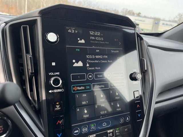 - Radio: Subaru 11.6" Multimedia Plus System -inc: AM/FM stereo, HD Radio, multi-touch gesture high resolution display screen, voice activated controls, Bluetooth® audio streaming and hands-free phone connectivity, Bluetooth® hands-free SMS text messaging connectivity, iPod control capability, smartphone integration: wired and wireless Android Auto w/full screen view and wireless Apple CarPlay w/full screen view, USB and Over The Air (OTA) audio system update, steering wheel audio system and Bluetooth® control switches, 6 speakers (2 dash panel tweeter, 2 front door and 2 rear door), illuminated 3.5mm auxiliary input jack, illuminated front USB A and C input/charge ports, connected services operation indicator, SOS emergency assistance: red SOS button and enhanced roadside assistance: blue i-button