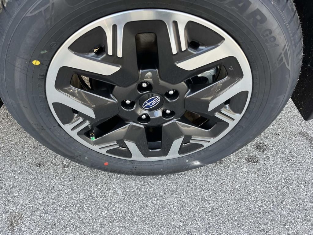 - Wheels: 17" x 7.0 J Dark Metallic Aluminum-Alloy -inc: machine finish and black wheel center cap w/Subaru 6 star logo