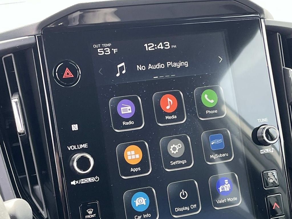- Radio: Subaru 11.6" Multimedia Plus System -inc: valet mode, integrated center information display, AM/FM stereo HD Radio, multi-touch gesture high resolution display screen, voice activated controls, Bluetooth® audio streaming and hands-free phone connectivity w/SMS text messaging (refer to Subaru.com for cellphone compatibility), iPod control capability, smartphone integration: Android Auto and Apple CarPlay w/full screen view and wireless connection, SiriusXM satellite radio w/360L (free 4-month trial subscription included), USB and Over The Air (OTA) audio system update, steering wheel controls, 6 speakers, 3.5mm auxiliary input jack and roof mounted audio and satellite antenna