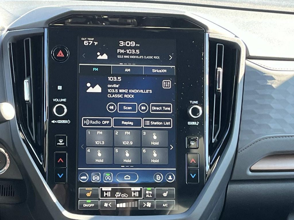 - Radio: Subaru 11.6" Multimedia Plus System -inc: valet mode, integrated center information display, AM/FM stereo HD Radio, multi-touch gesture high resolution display screen, voice activated controls, Bluetooth® audio streaming and hands-free phone connectivity w/SMS text messaging (refer to Subaru.com for cellphone compatibility), iPod control capability, smartphone integration: Android Auto and Apple CarPlay w/full screen view and wireless connection, SiriusXM satellite radio w/360L (free 4-month trial subscription included), USB and Over The Air (OTA) audio system update, steering wheel controls, 6 speakers, 3.5mm auxiliary input jack and roof mounted audio and satellite antenna