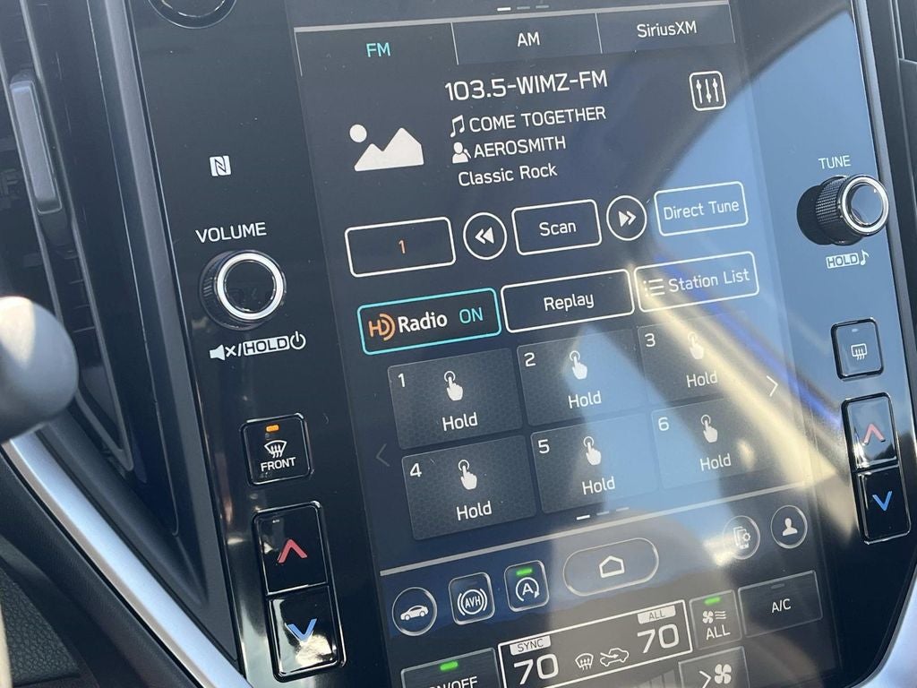 - Radio: Subaru 11.6" Multimedia Plus System -inc: valet mode, AM/FM stereo, HD Radio, multi-touch gesture high resolution display screen, voice activated controls, Bluetooth® audio streaming and hands-free phone connectivity, Bluetooth® hands-free SMS text messaging connectivity, iPod control capability, smartphone integration: wired and wireless Android Auto w/full screen view, wireless Apple CarPlay w/full screen view and wireless connection, USB and Over The Air (OTA) audio system update, audio system and Bluetooth® steering wheel control switches, 6 speakers (2 dash panel tweeter, 2 front door, 2 rear door), illuminated 3.5mm auxiliary input jack, illuminated USB A and C input charge ports, roof mounted satellite and connected services, roof mounted black antenna, connected services operation indicator, SOS emergency assistance (red button) and ehanced roadside assistance (blue i-button)