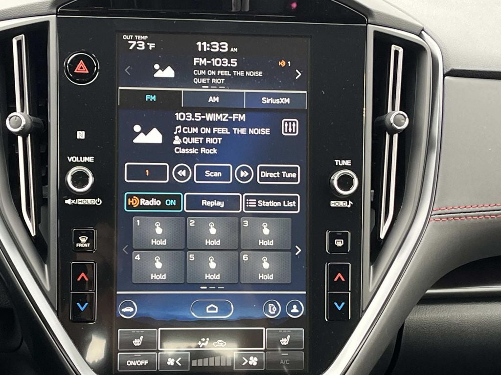 - Radio: Subaru 11.6" Multimedia Plus System -inc: AM/FM stereo HD radio, valet mode, multi-touch gesture high resolution display screen, voice activated controls, Bluetooth® audio streaming and hands-free phone connectivity, Bluetooth® hands-free SMS text messaging connectivity, iPod control capability, rear-vision camera display, smartphone integration: Android Auto w/full screen view and wireless connection, Apple CarPlay w/full screen view and wireless connection, USB and Over The Air (OTA) audio system update, 6 speakers and roof mounted audio, satellite and connected services antenna, SiriusXM w/360L (4 months free trial included/subscription required after) and SiriusXM Travel Link (4 months free trial/subscription required after)