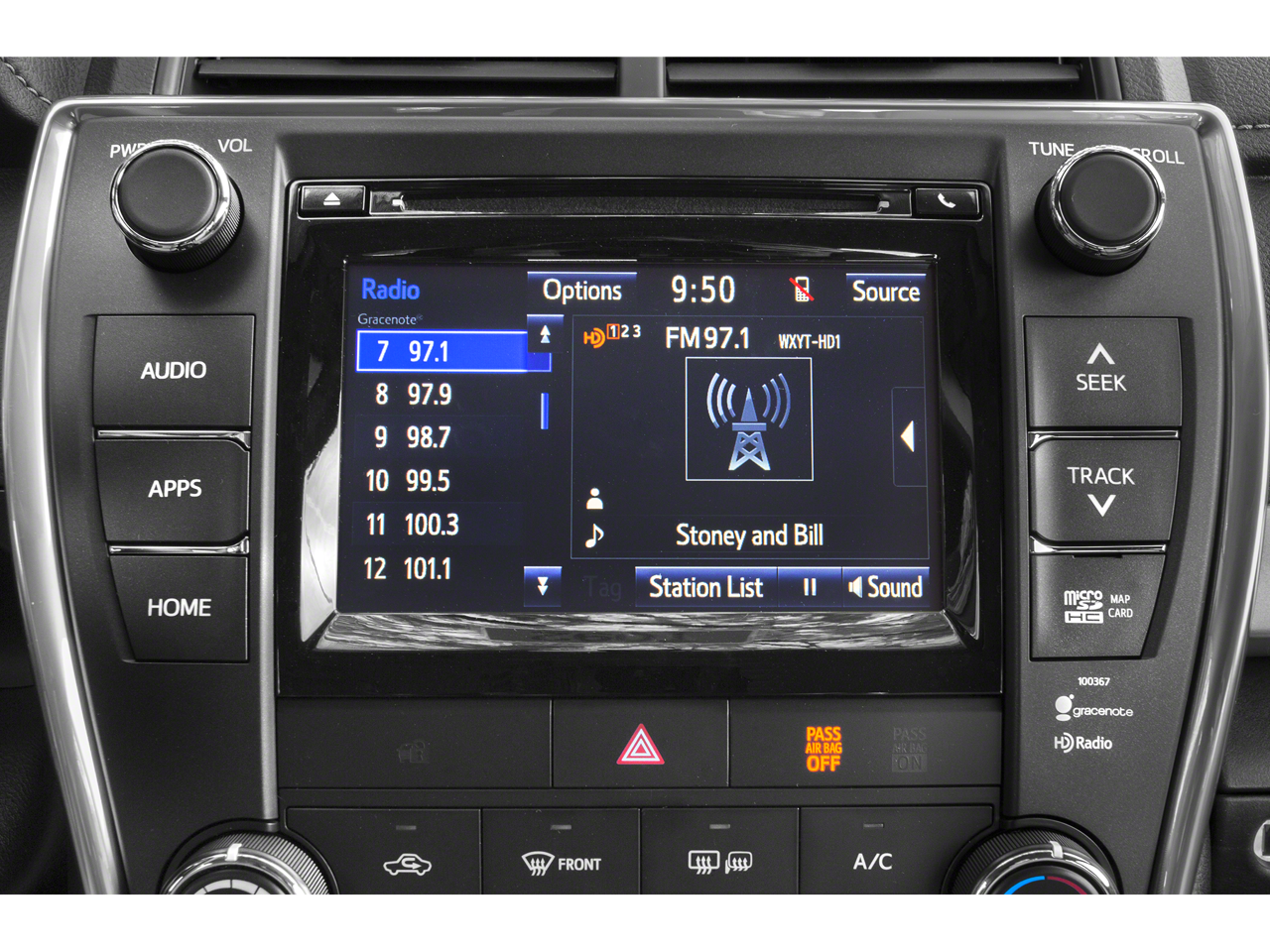 - Radio: Entune Audio -inc: Entune multimedia bundle, 6.1" touch-screen display, AM/FM CD player, MP3/WMA playback capability, 6 speakers, auxiliary audio jack, USB 2.0 port w/iPod connectivity and control, hands-free phone capability, phone book access, advanced voice recognition and music streaming via Bluetooth® wireless technology