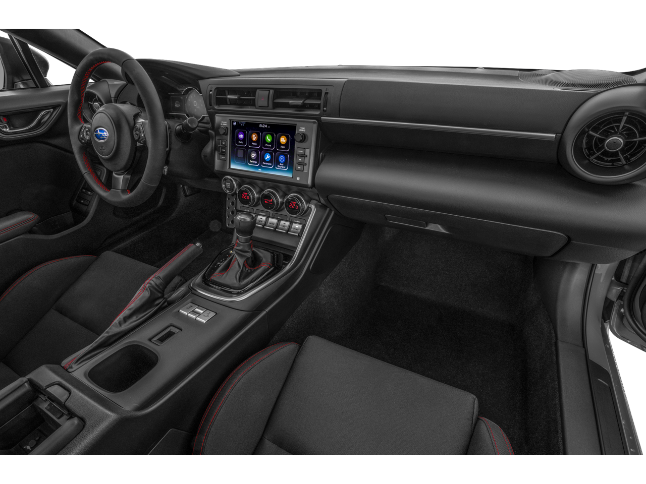 Dressed in a stunning Blue exterior, the BRZ Premium offers a bold and sporty appearance, complemented by sleek alloy wheels and a functional rear spoiler. Step inside and you'll be greeted by a well-appointed interior featuring cloth upholstery with red stitching, a leather-wrapped steering wheel, and a STARLINK 8.0 Multimedia Plus System with Apple CarPlay and Android Auto integration.