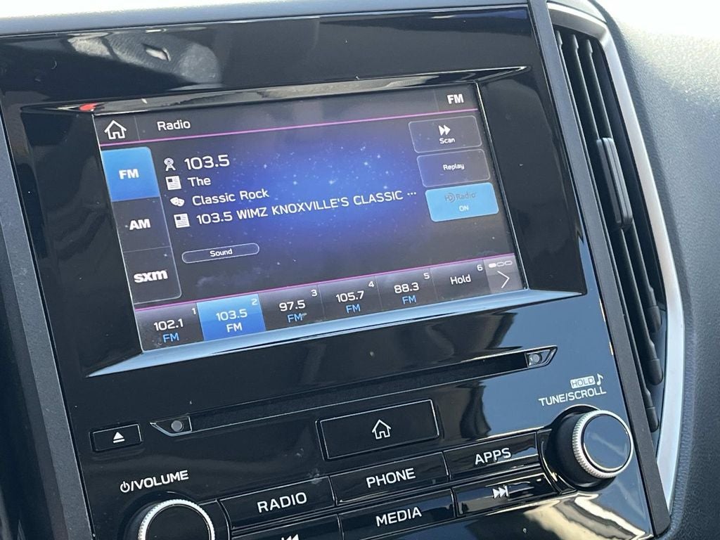 - Radio: Subaru STARLINK 6.5" Multimedia Plus System -inc: AM/FM stereo, HD Radio, single disc CD player w/MP3/WMA/CRR/RW file capability, multi-touch gesture high resolution display screen, voice activated controls, Bluetooth® audio streaming and hands-free phone connectivity, Bluetooth® hands-free SMS text messaging connectivity, iPod control capability, SiriusXM All Access Radio (4 months free trial/subscription required after), SiriusXM Travel Link (4 months free trial/subscription required after), smartphone integration: AHA, Android Auto, CarPlay, Pandora and STARLINK cloud applications, USB audio system, 6 speakers (2 dash panel tweeter, 2 front door and 2 rear door), 3.5mm auxiliary input jack, dual USB input/charge ports and roof mounted audio, satellite and connected services antenna